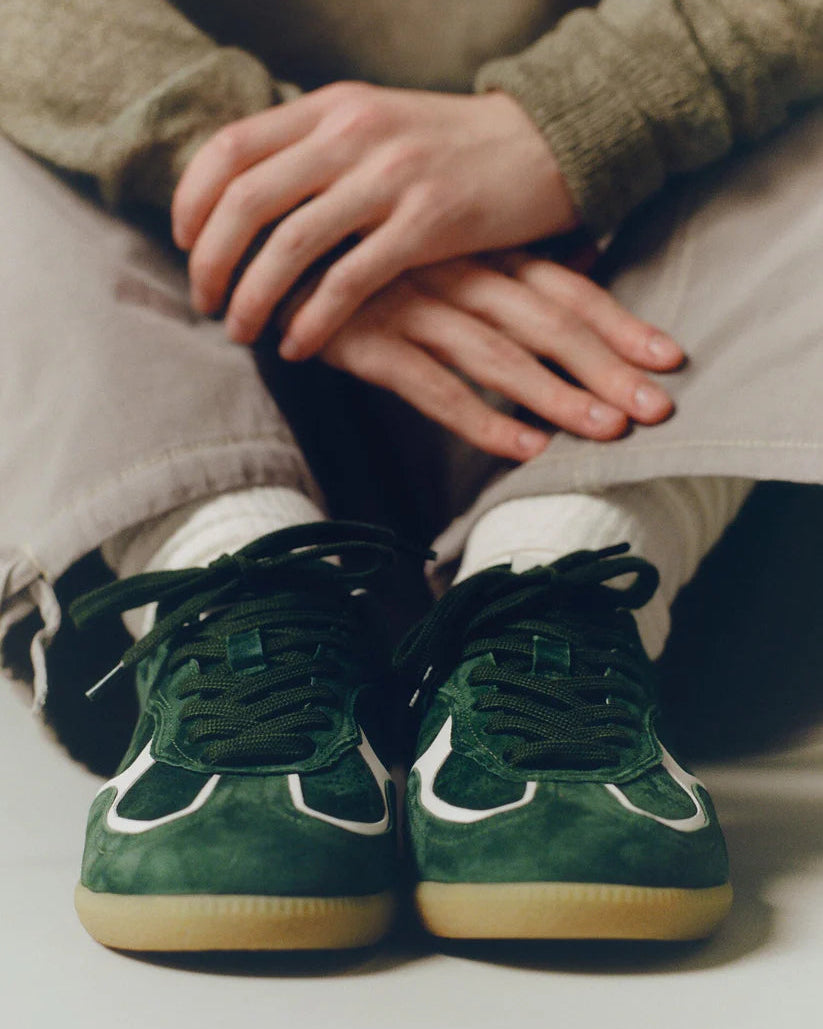 Sneaker in tessuto tecnico con inserti in suede multicolor. Occhielli rinforzati e lacci trek. Soletta interna in sughero naturale antibatterico, fondo in gomma ultra leggera con battistrada dentellato.